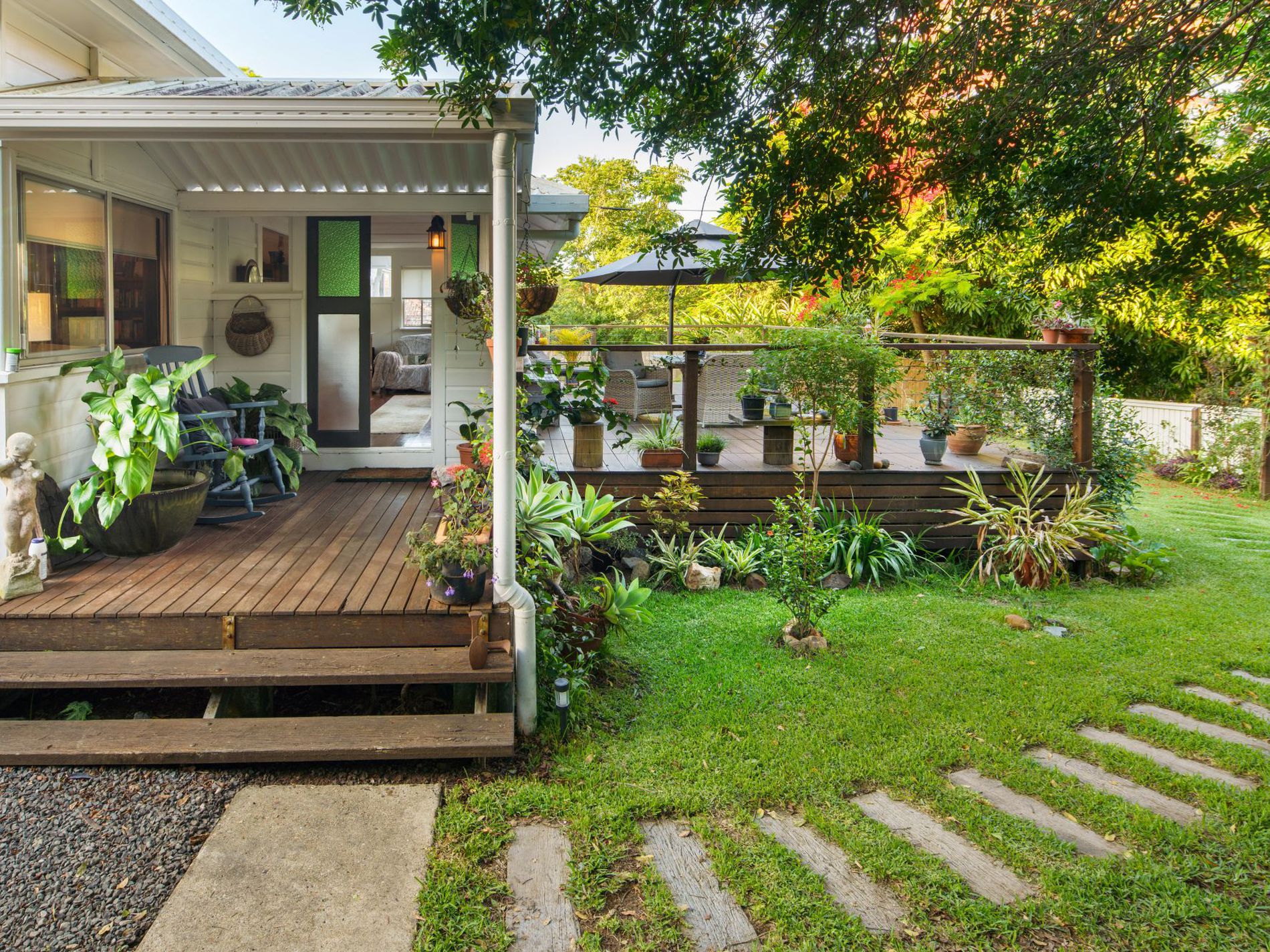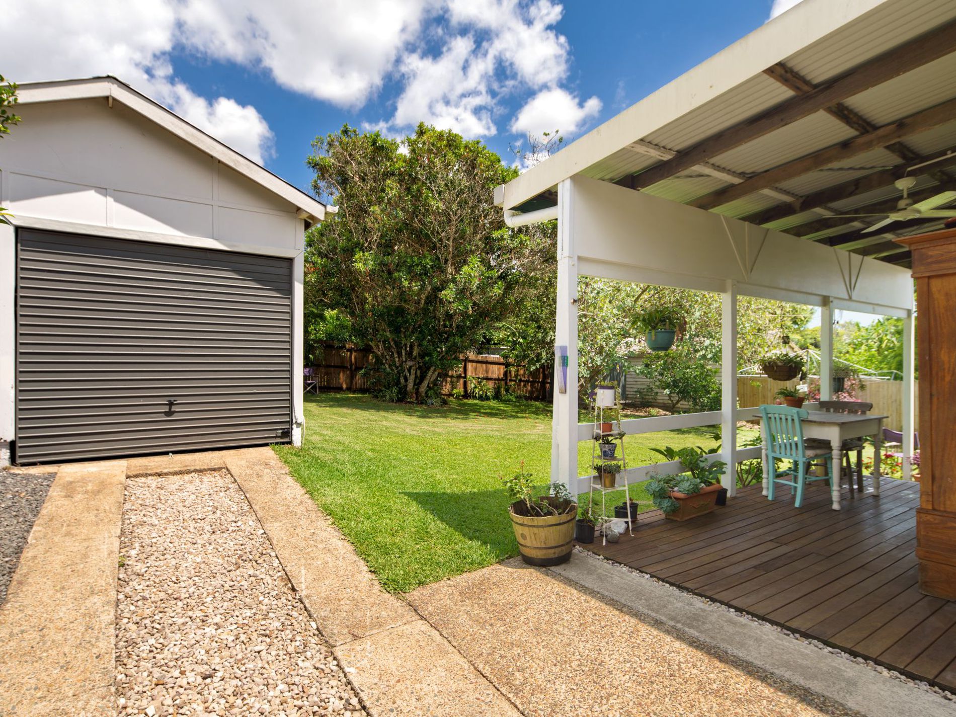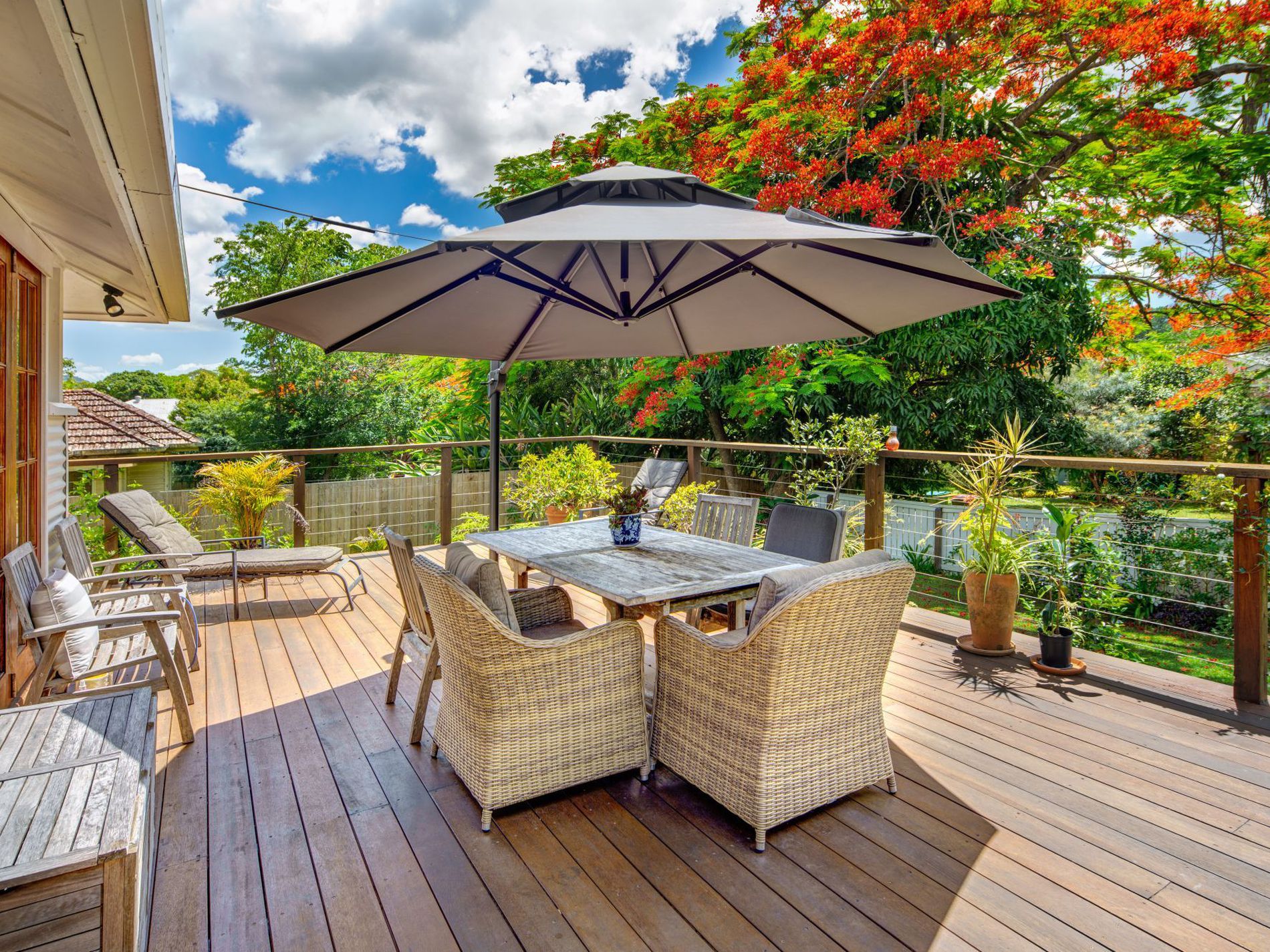Outdoors, the established gardens offer a sanctuary of colour and calm. Relax on the verandah and admire the vibrant flowers, mature trees, and visiting birdlife, or simply stretch out on the sun-drenched deck and unwind after a long day.