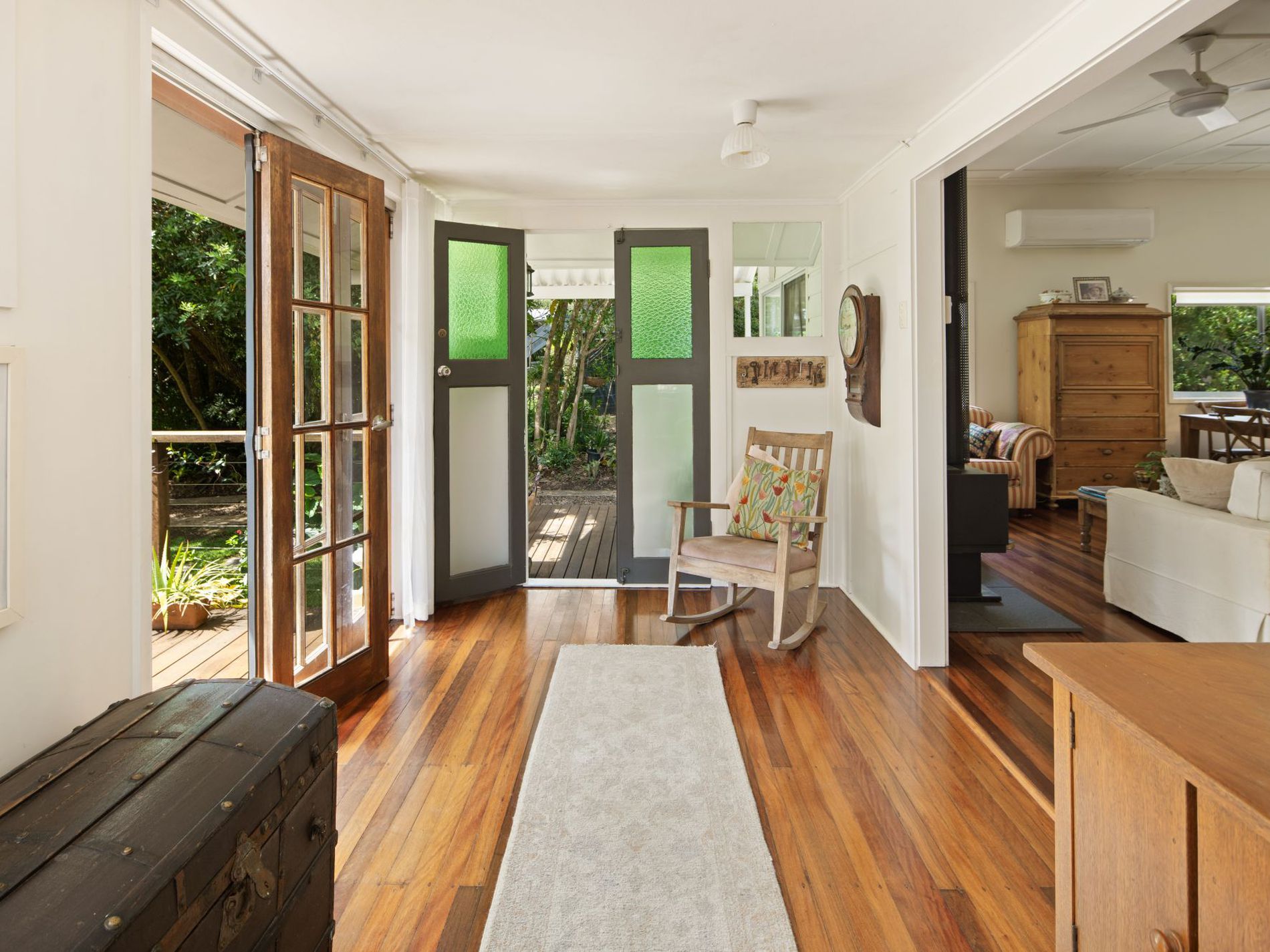 A seamless indoor–outdoor connection elevates everyday living. The inviting front sunroom flows through timber bi-fold doors to a spacious elevated deck—perfectly positioned for morning coffees, alfresco dining, or evening drinks surrounded by cooling breezes.
