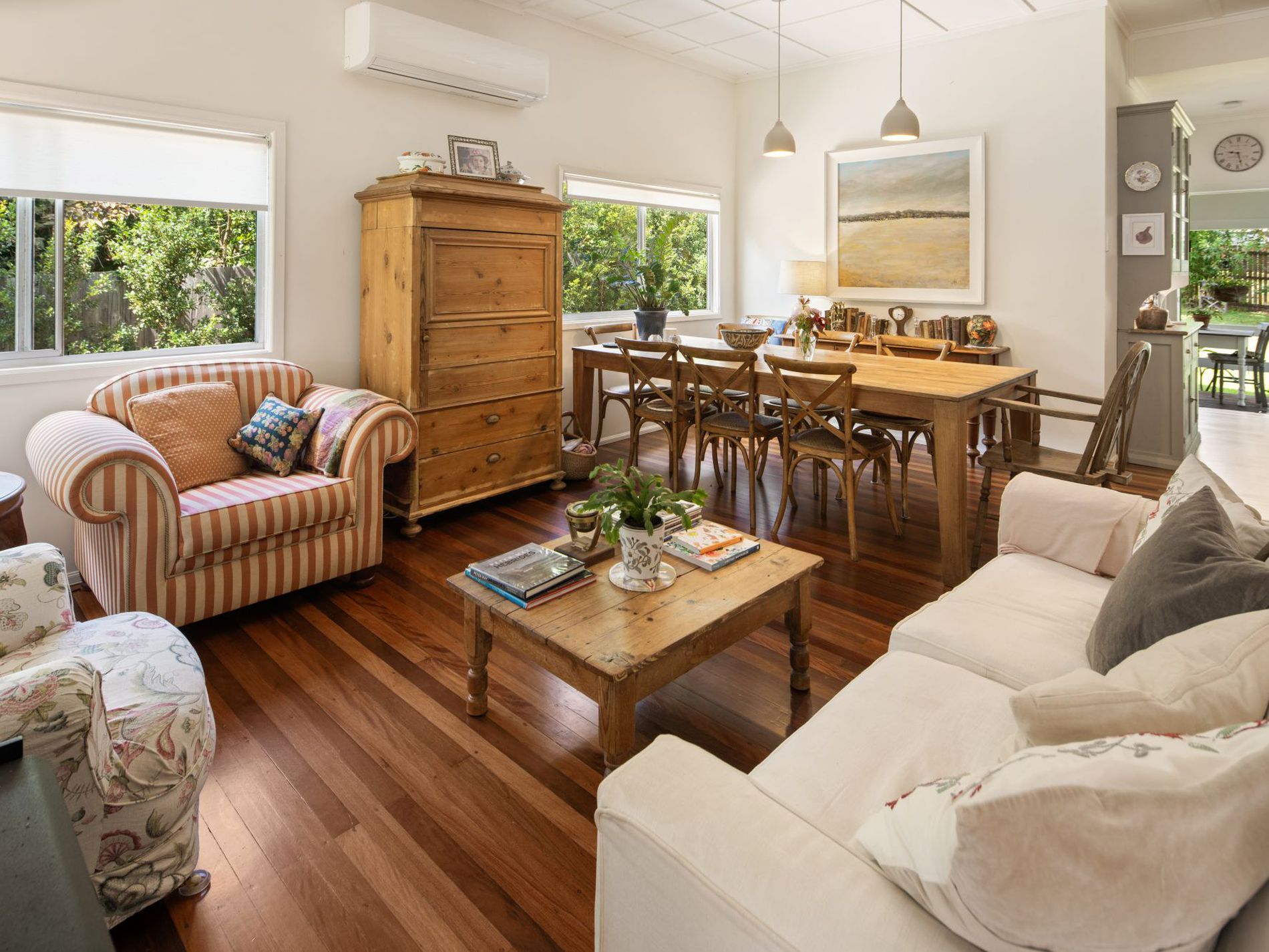 Step inside and immediately feel at home. Gleaming polished hardwood floors, fresh light-filled interiors, and subtle nods to its mid-century heritage create a warm and inviting atmosphere throughout. The generous living spaces have been thoughtfully designed for both relaxation and entertaining, with natural light streaming effortlessly through the open-plan layout. Enjoy family gatherings in the bright central living zone, or retreat to a quiet corner with a book and soak up the tranquillity.