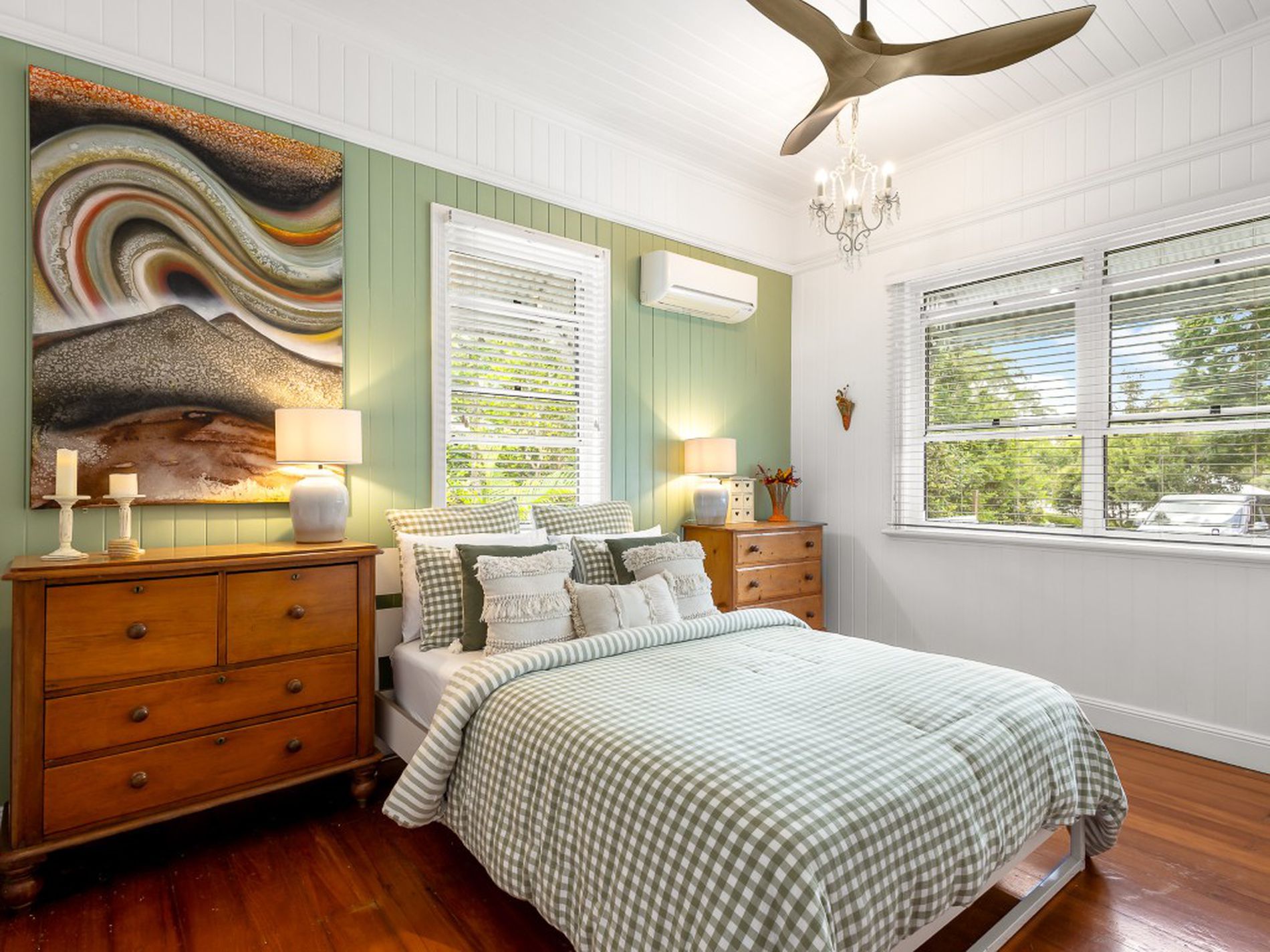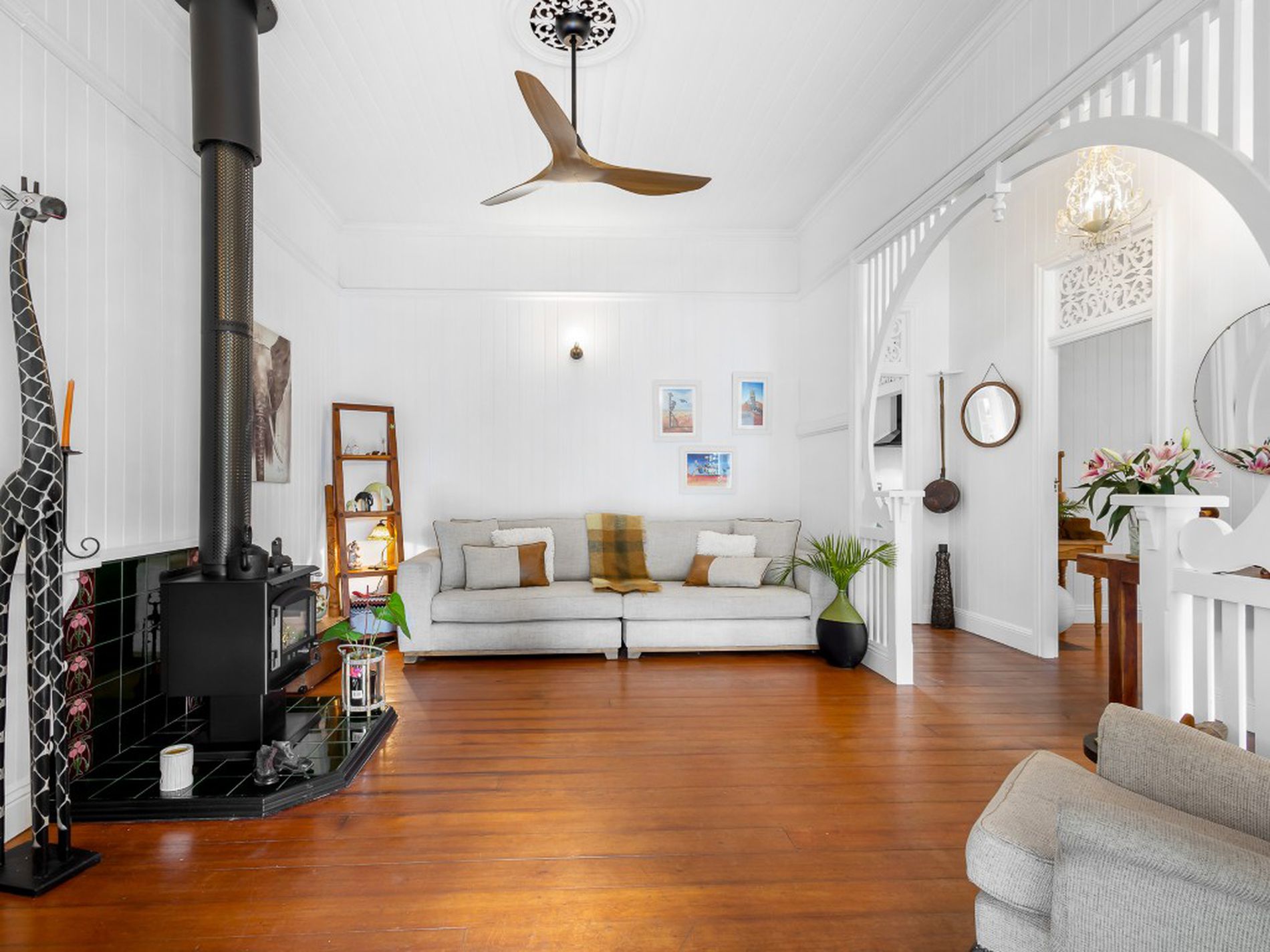 • Polished timber floors, VJ walls, soaring ceilings and original fretwork