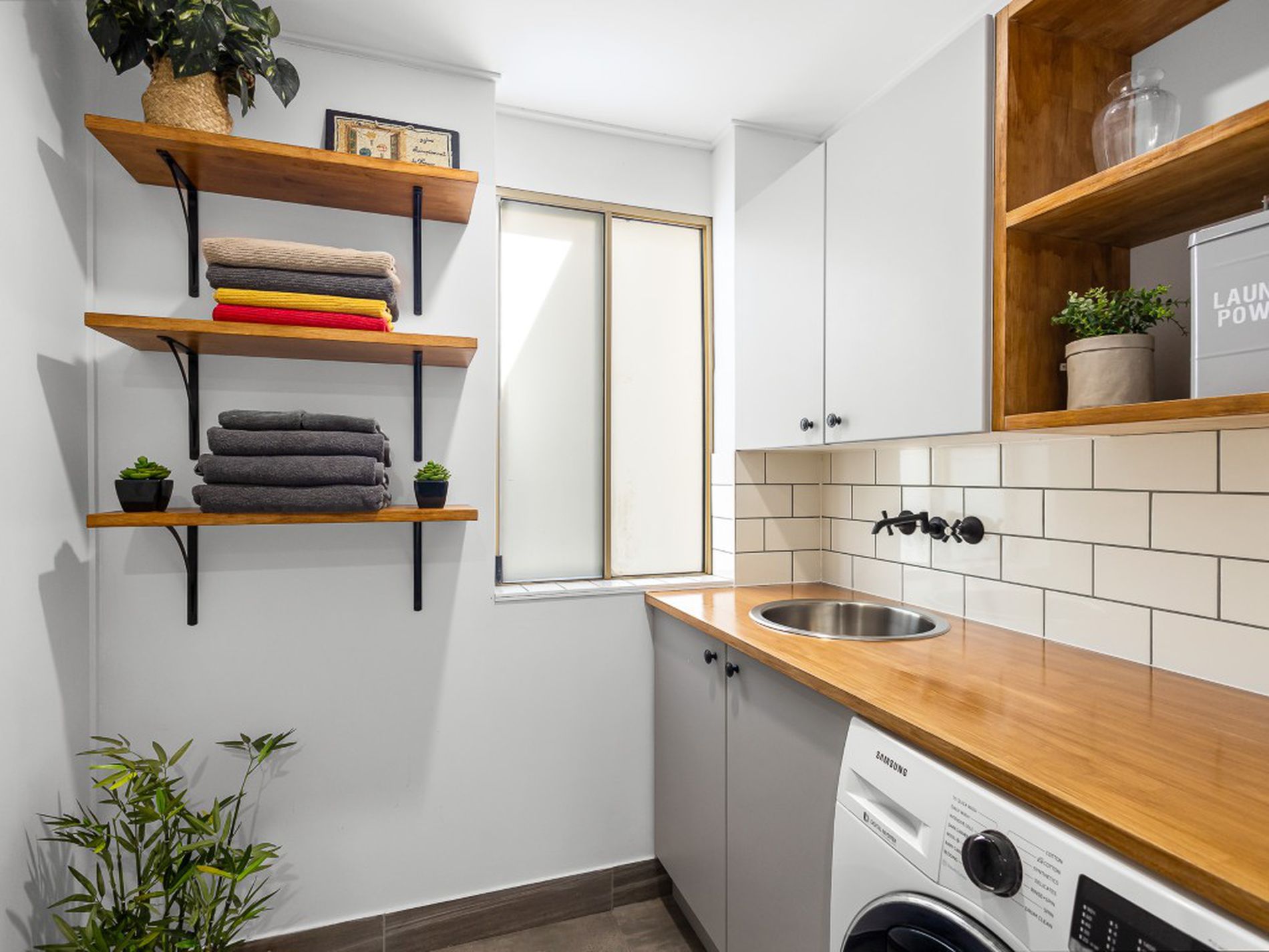 • Contemporary kitchen with Falcon double oven, 900mm gas cooktop and walk-in pantry