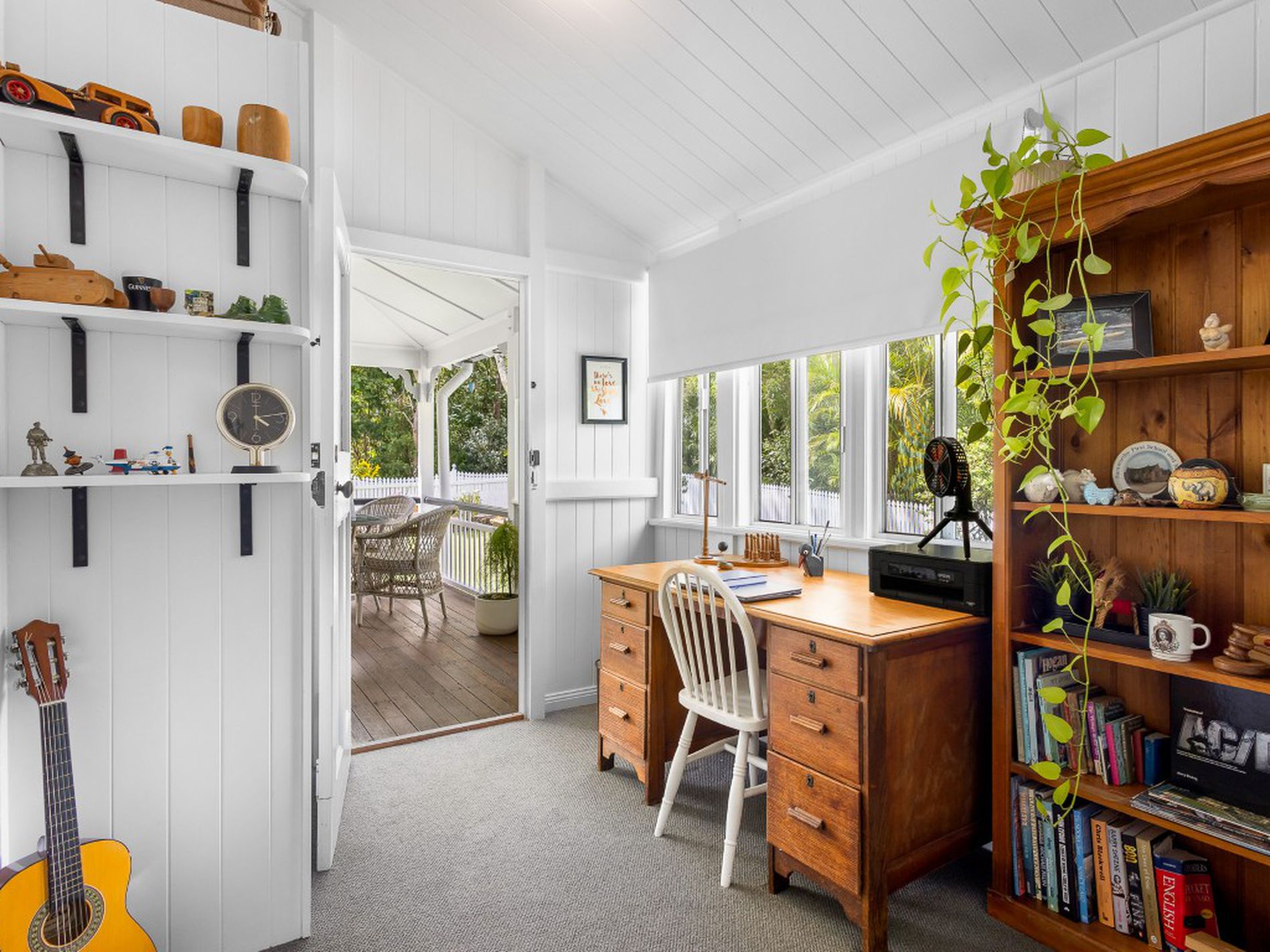 Upstairs, two generous bedrooms with built-in robes and air conditioning provide refined comfort, while a fourth bedroom or private office enjoys its own access from the front verandah, ideal for those looking to working from home.